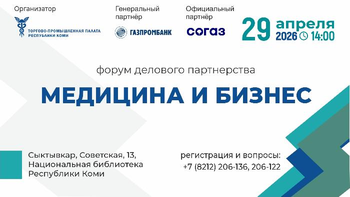 Форум делового партнёрства «Медицина и бизнес» пройдет 29 апреля в Национальной библиотеке Республики Коми на Советской, 13.
