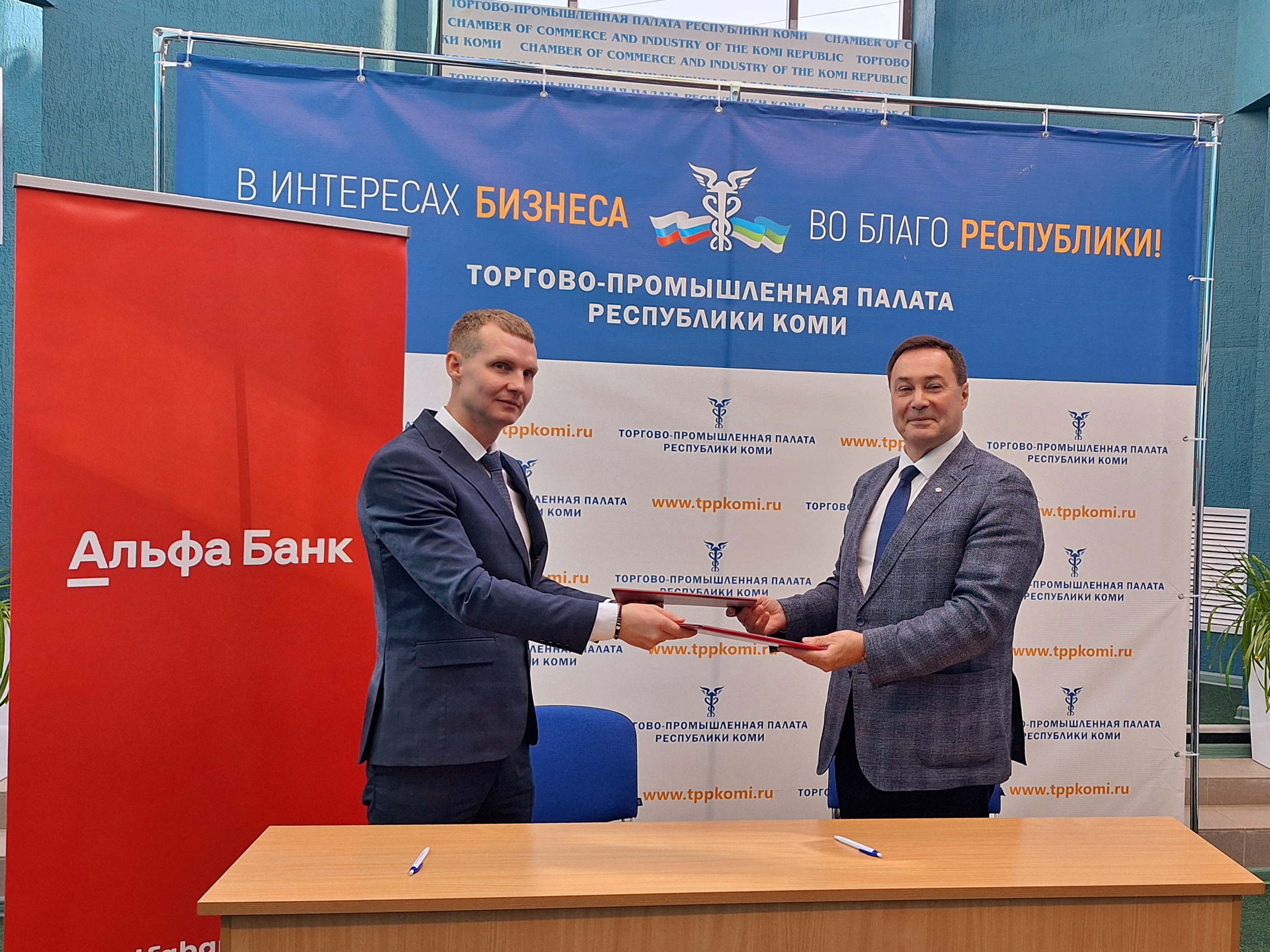 Сегодня в Сыктывкаре региональный управляющий Альфа-Банка в Республике Коми Виктор Черепахин подписал соглашение о вступлении Акционерного общества «АЛЬФА-БАНК» в члены Союза «Торгово-промышленная палата Республики Коми»