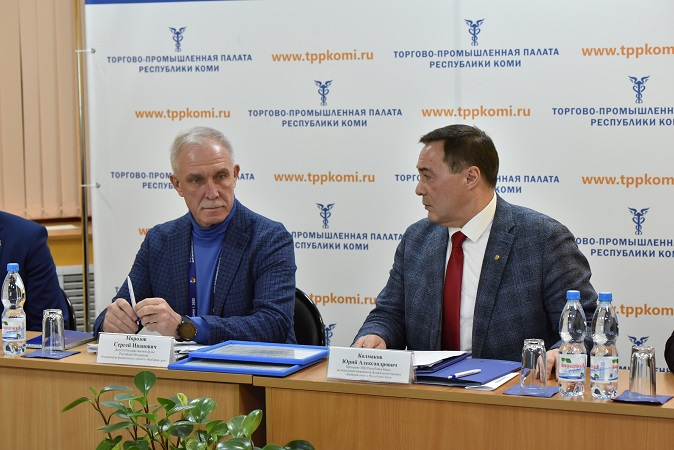 В рамках визита в республику 23 ноября первый заместитель председателя Комитета Государственной Думы по региональной политике и местному самоуправлению Сергей Морозов* встретился с представителями деловых общественных объединений региона. В мероприятии приняли участие Председатель Государственного Совета Республики Коми Сергей Усачёв, заместители Председателя регионального парламента Валентина Жиделева и Сергей Артеев. Совещание состоялось на базе Торгово-промышленной палаты Коми.