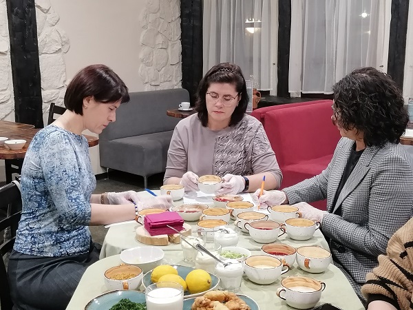 Настроение подняли напиток из иван-чая и легкие закуски к соусам, которые особенно пришлись по вкусу. Поэтому сразу после дегустации приступили к самостоятельному приготовлению - сложному, но увлекательному процессу.