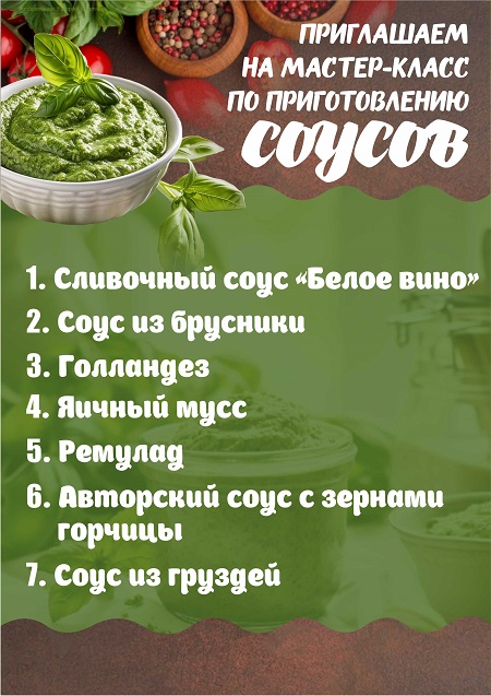 Следующий мастер-класс по соусам пройдет 17 октября, начало в 17.30