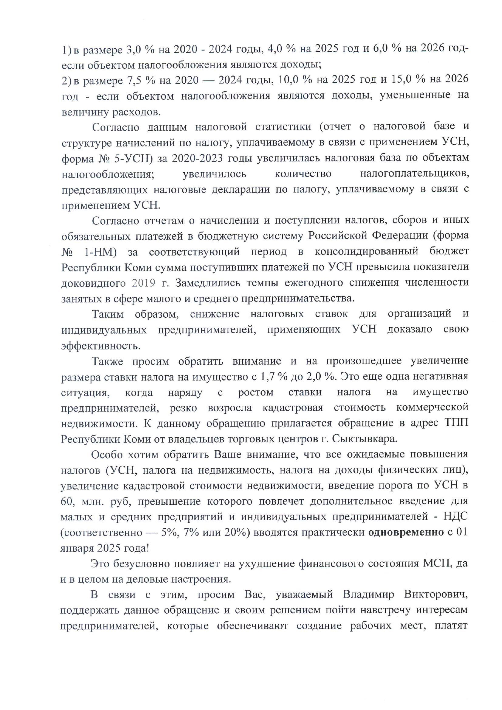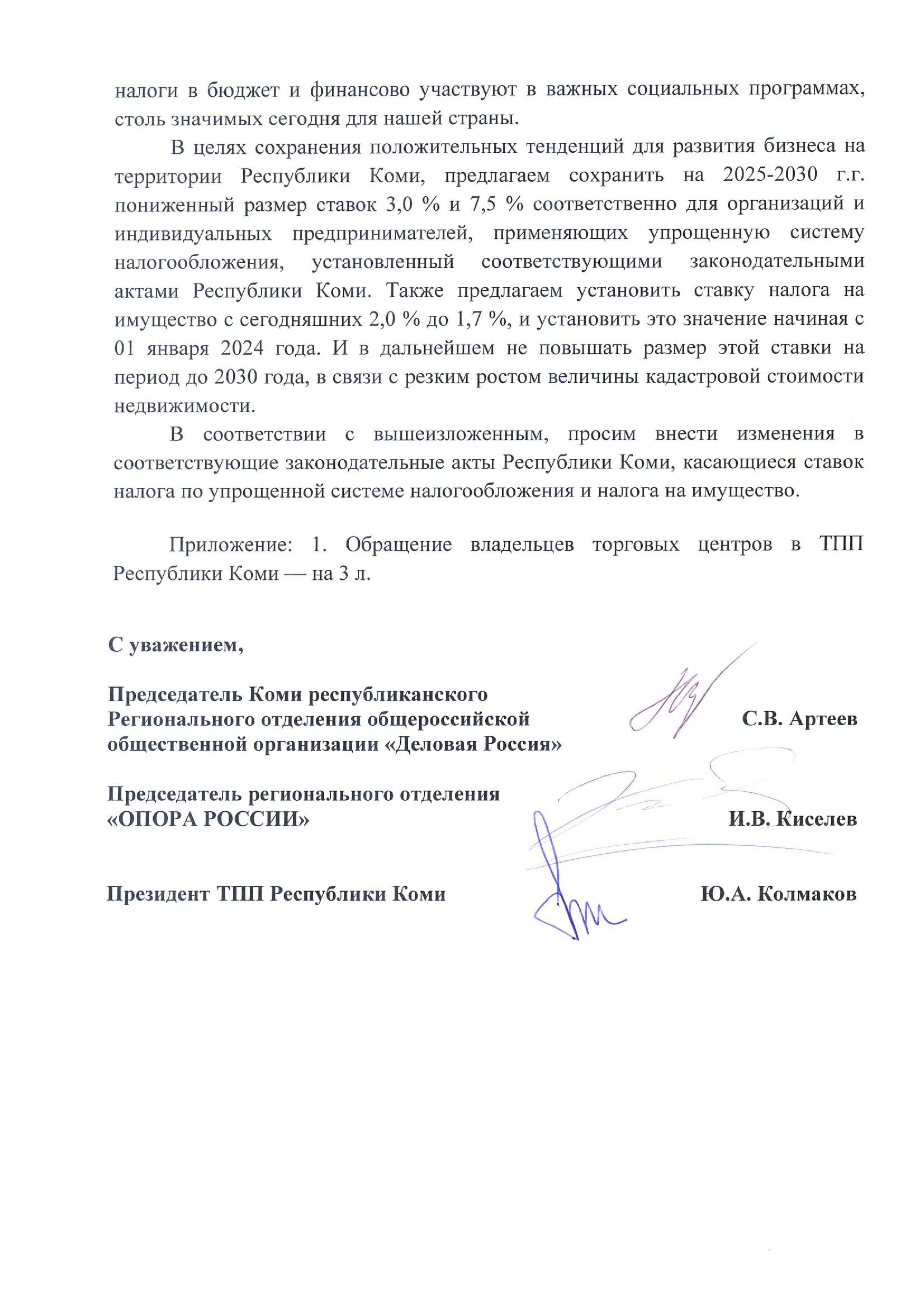 Обращение ТПП Коми к органам власти Коми в поддержку республиканского бизнеса