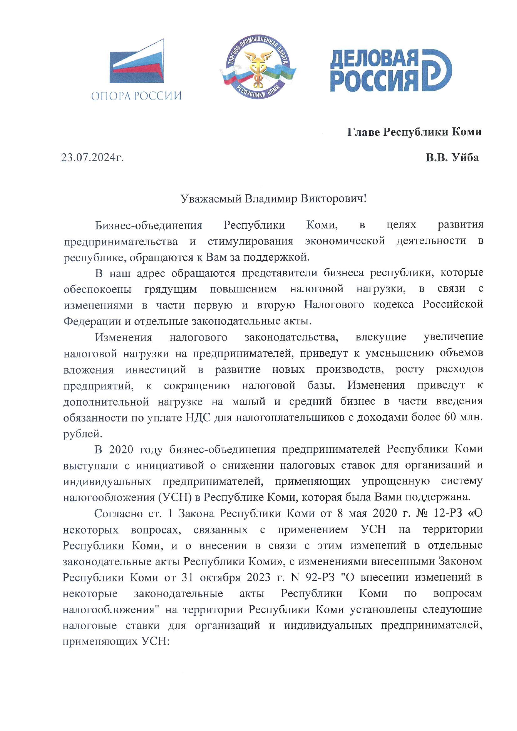 Торгово-промышленная палата Республики Коми инициировала подготовку и направила в органы власти республики обращение в поддержку бизнеса региона.