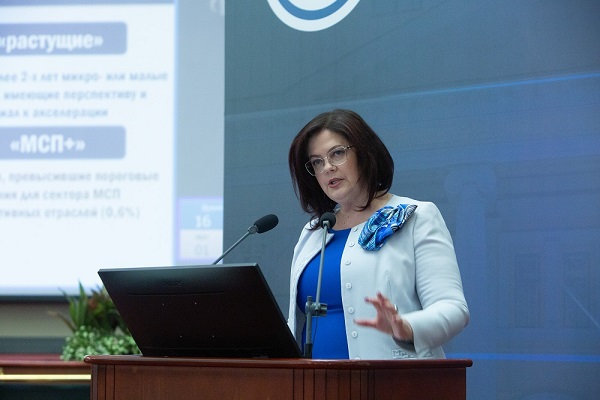 Третий блок был призван дать представление о трансформации целей и задач поддержки МСП, включая развитие производственного бизнеса. Текущее положение дел и инициативы по данному направлению представила участникам вице-президент ТПП РФ Елена Дыбова.
