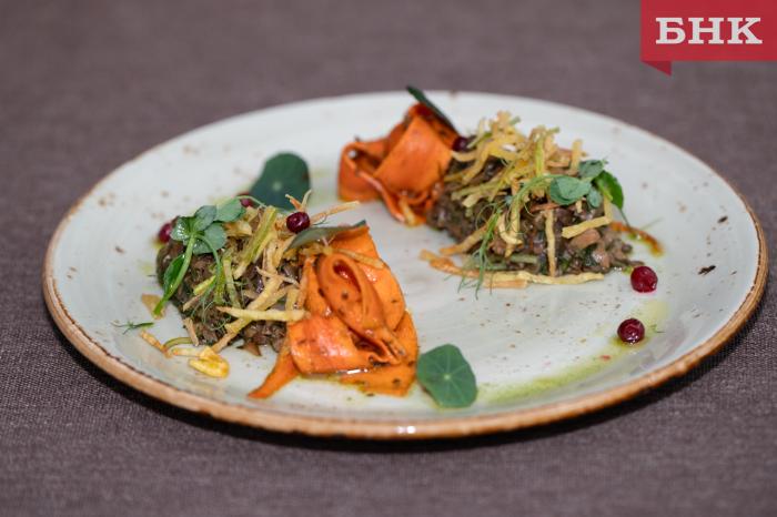 Завершающим аккордом экспедиции стал национальный обед, который шеф-повар кафе ТПП Коми «Меркурий» Илья Данилов составил по мотивам собранных рецептов. В него попали колобок с соусами: растопленным солоноватым сливочным маслом из Прилузья, толченой клубникой и черникой со сметаной­, листушки — хлеб, запеченный на капустных листьях, салат из сушеных грибов, обжаренных с луком и укропом, с маринованной морковью и соломкой из картофеля.