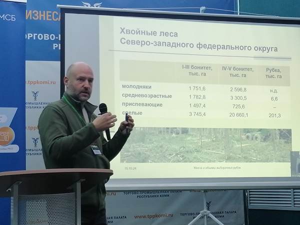 Открыл семинар руководитель ТПП Коми Юрий Колмаков. Ведет мероприятие вице-президент ТПП Коми Андрей Кривошеин. Участников приветствовали замминистра природных ресурсов и охраны окружающей среды Коми Павел Азаренков, директор системы "Лесной эталон" Николай Шматков.