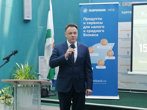 С приветственным словом обратился Кирилл Ковалев, директор по развитию бизнеса в Республике Коми филиала Банка «ГАЗПРОМБАНК» (Генеральный партнер семинара).