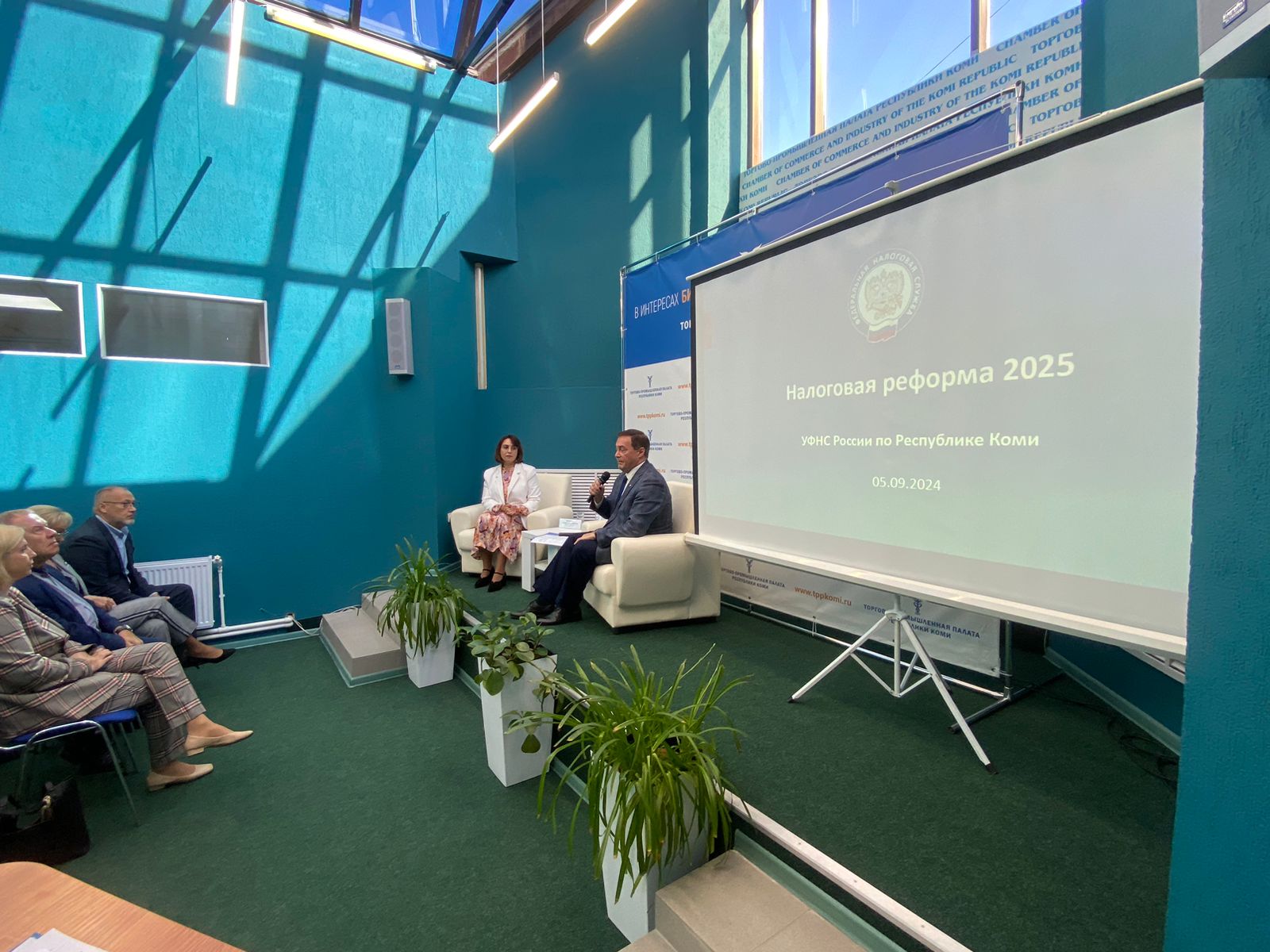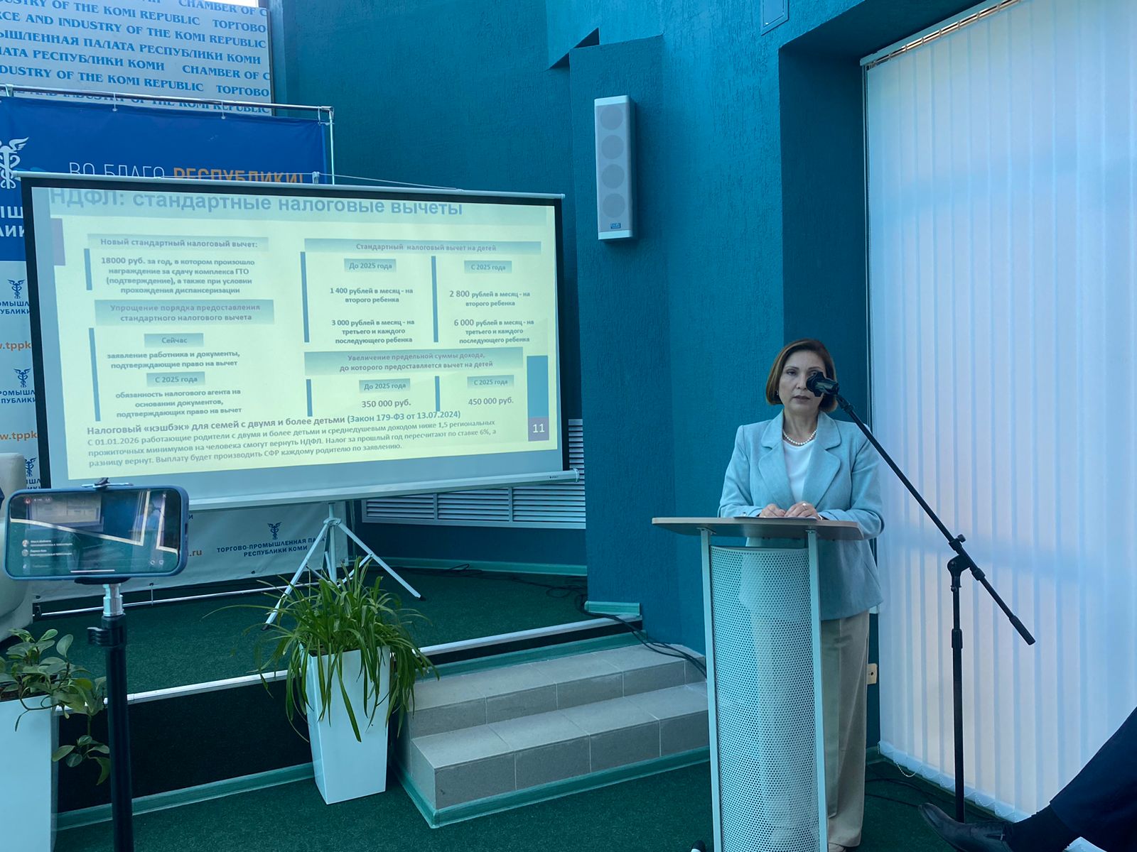 В Торгово-промышленной палате Республики Коми состоялась рабочая встреча УФНС Республики Коми с предпринимателями региона. Представителям бизнеса рассказали об актуальных изменениях налогового законодательства с 2025 года