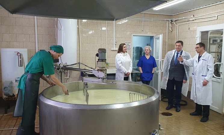 Экскурсию по предприятию для гостя из Сыктывкара провели директор Виктор Порядков, главный инженер Александр Белых и председатель Ольга Коротаева.